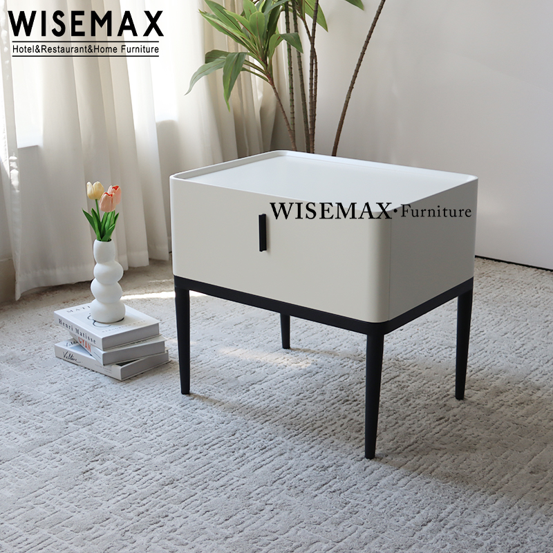 MODERN CREAM BEDROOM FURNITURE SOLID WOOD NIGHTSTAND BEDSIDE TABLE WITH STORAGE DRAWER FOR HOME