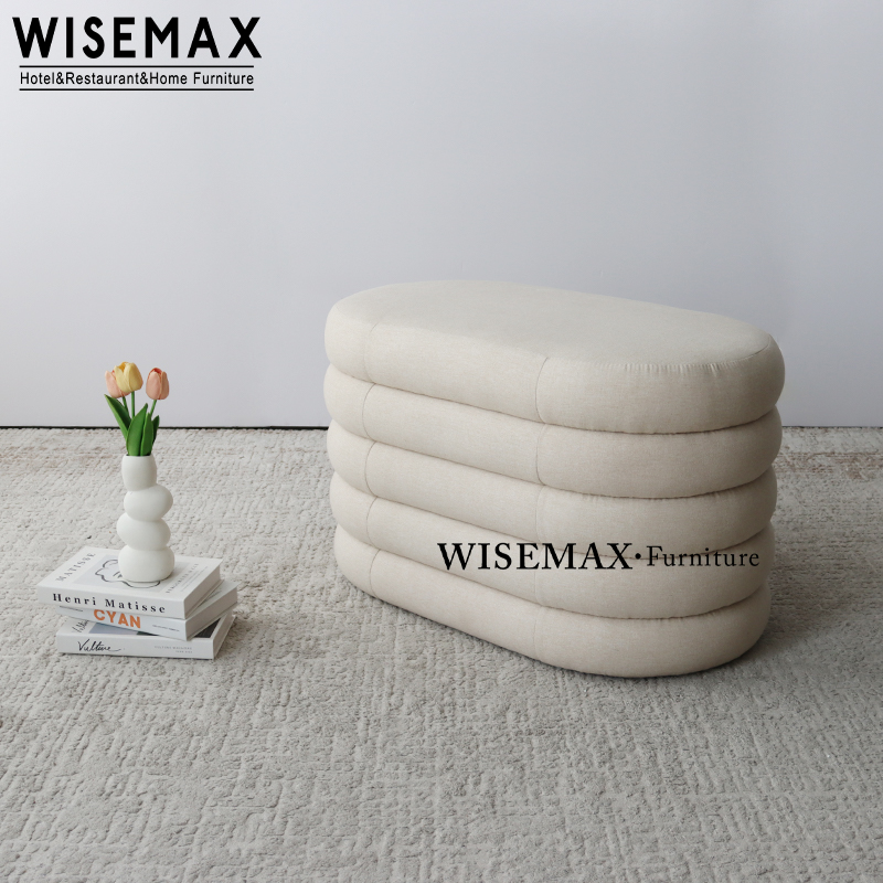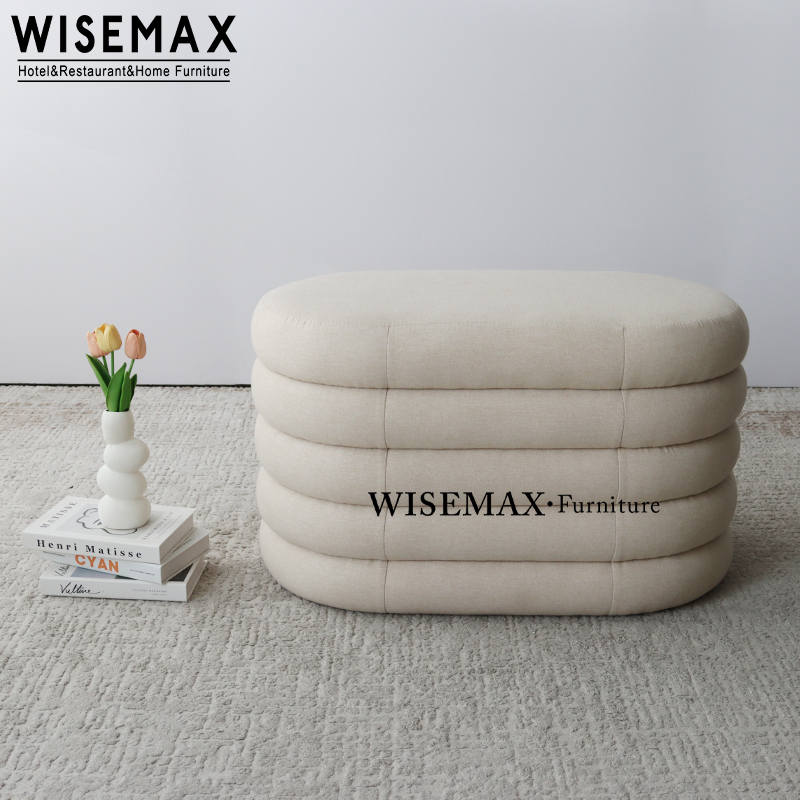 MINIMALIST HOME FURNITURE IRREGULAR ROUND LOW STOOL FABRIC UPHOLSTERED BEDROOM DRESSING CHAIR