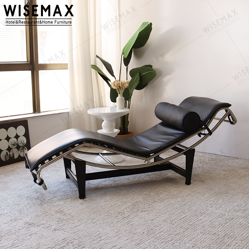 THE MODERN LIVING ROOM FURNITURE BLACK LEATHER STAINLESS STEEL RECLINER