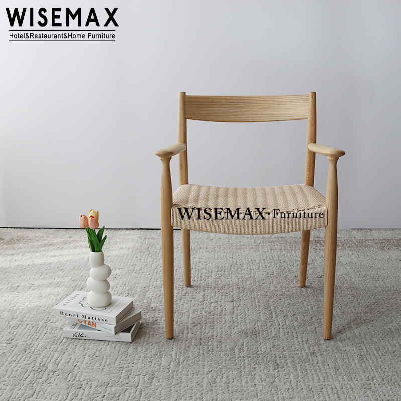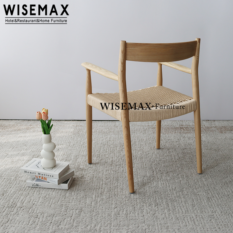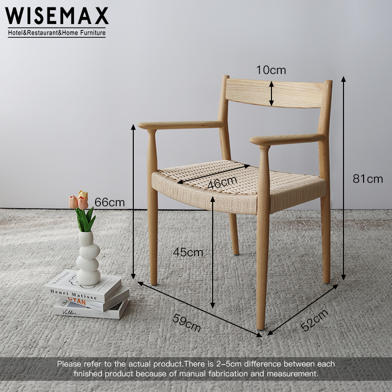 The backrest of the dining chair provides support to the back.The seat is woven rope,which is tough ,durable and breathable.Solid wood frame is stable and the bottom has anti-scratch and anti-slip pads to avoid scratching the floor.