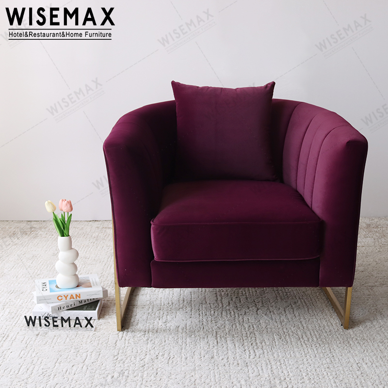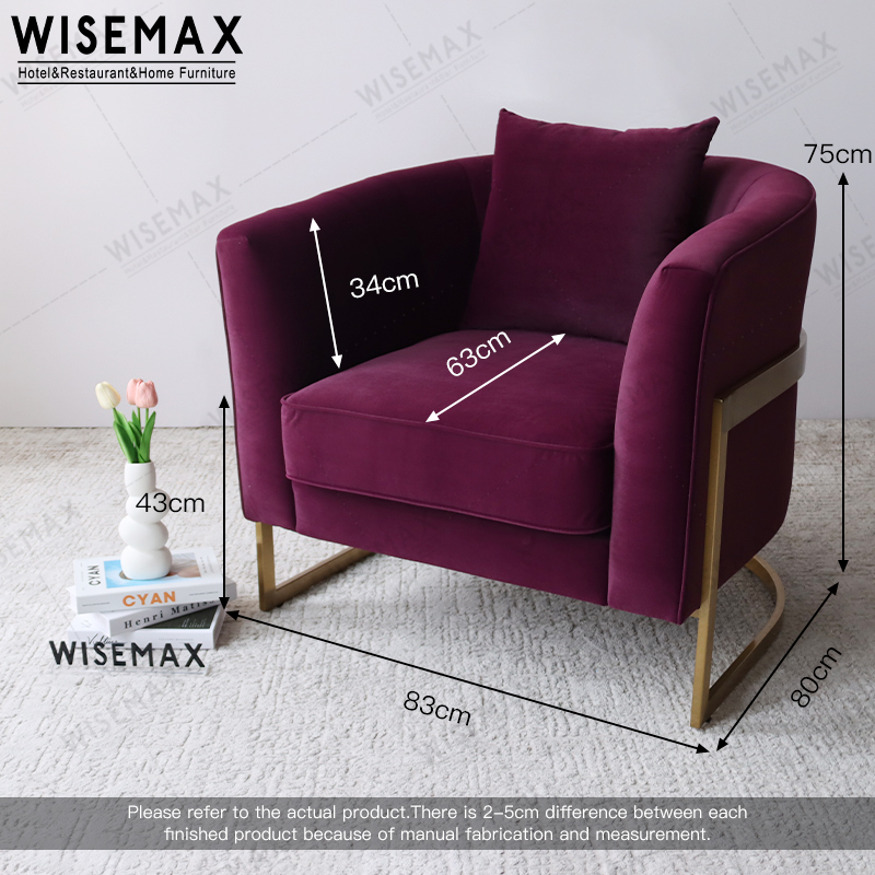 MODERN GOLDEN STAINLESS STEEL VELVET TUFTED ROUNDED SINGLE SOFA ARM CHAIR ACCENT CHAIR