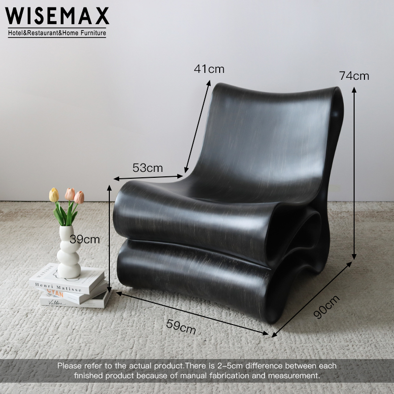The leisure chair is made of fiberglass material,the outlook design is unique and special.The arc design comforts human body to brings better sitting feeling.The chair color can be black and other color you want.