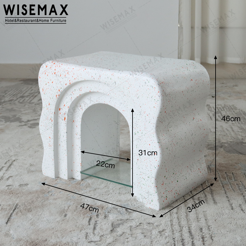 DESIGNER WAVY ARCH SHAPE RESIN COFFEE TABLE SMALL NIGHTSTAND BEDSIDE TABLE WITH SHELVING