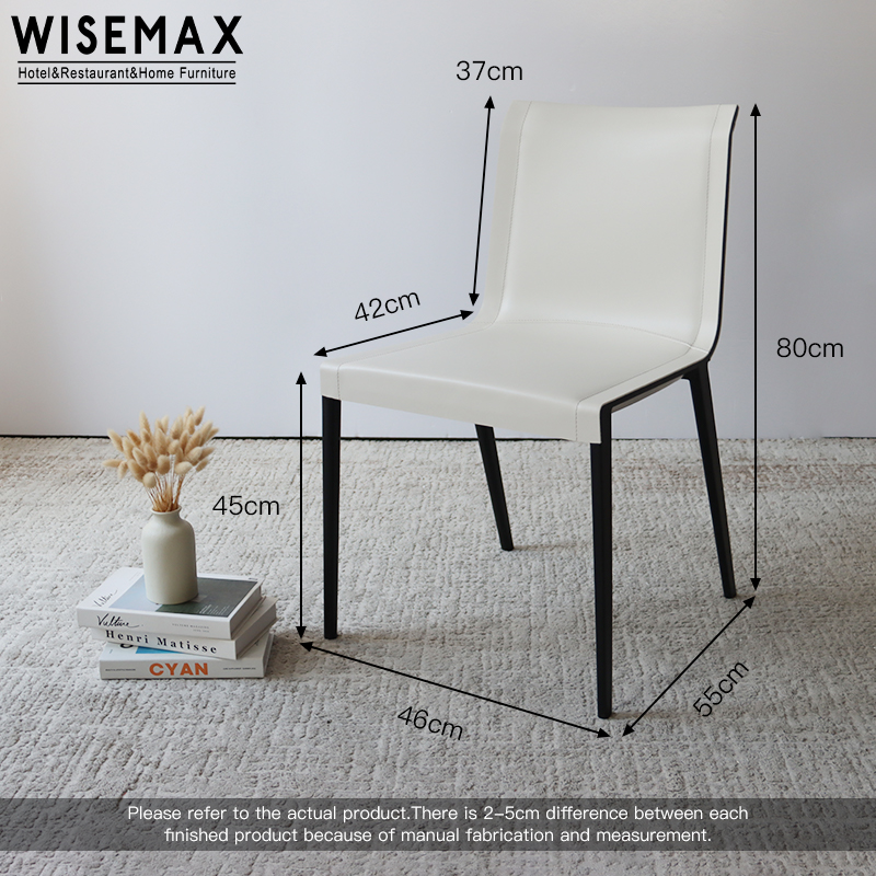 The white saddle leather backrest features smooth lines and a simple yet stylish design.The full, thick white seat cushion provides comfortable and stable support.The slender black metal chair legs provide stable support for the entire chair, and the design is clean and neat.
