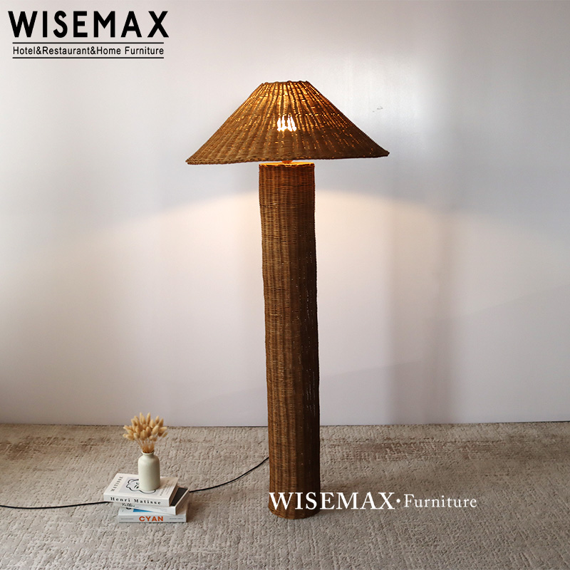 JAPAN RETRO LIVING ROOM FURNITURE NATURAL RATTAN FLOOR LAMP VINTAGE SOFA CORNER DECOR LIGHT FOR HOME