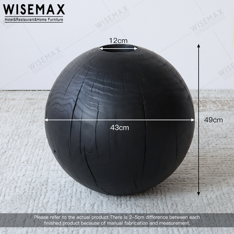 The vase is made of solid pine wood with carboniztion treatment in black color.The surface of the vase has been carefully smoothed and has its original texture.The base of the vase has an anti-scratch pad to avoid scratching the floor.