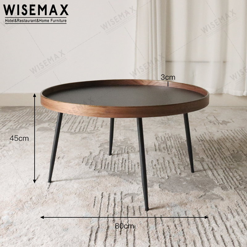 The coffee countertop is made of plywood, and the countertop is made of solid metal, which is sturdy and durable, suitable for sofa or chair sides. The table adopts a detachable design with less cbm.
