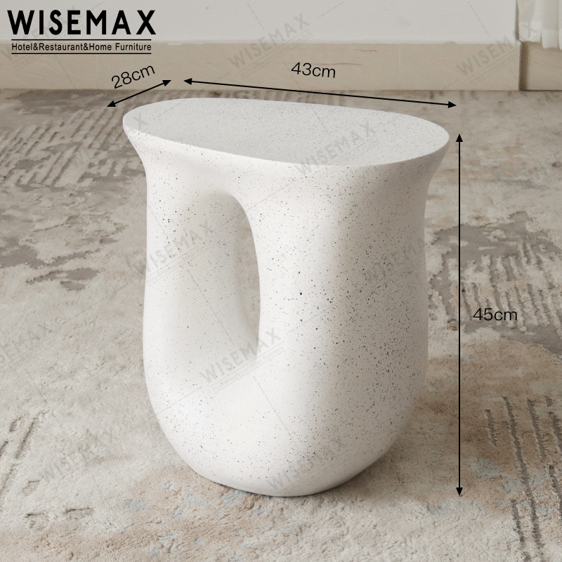 The side table is made of resin and fiberglass materials. It can be used as a side table indoors or outdoors. The overall size is 43 * 28 * 45cm in standard cardboard box packaging