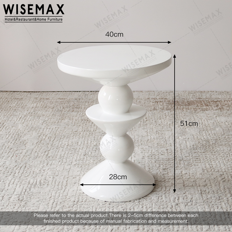 The countertop of the side table is round in design, and the edges are rounded and smooth. The side table is made of fiberglass, strong and durable.
