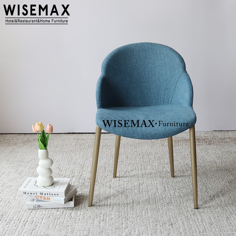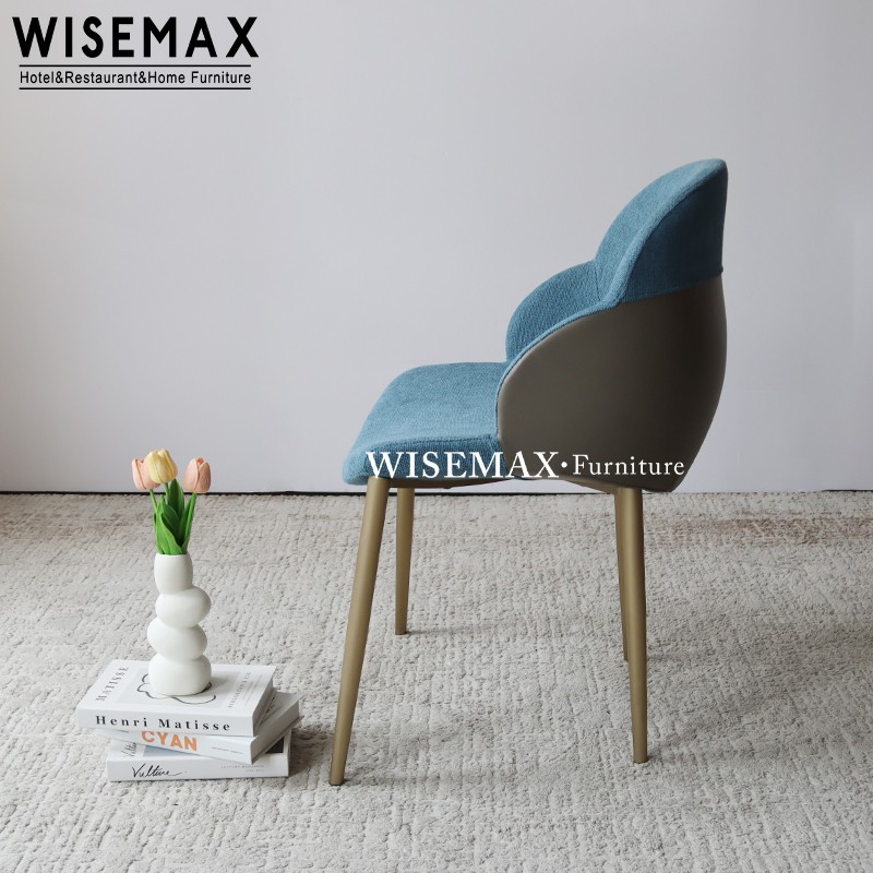 ITALIAN LUXURY HOTEL FURNITURE UPHOLSTERY FABRIC DINING ROOM CHAIR BACKREST METAL RESTAURANT CHAIR