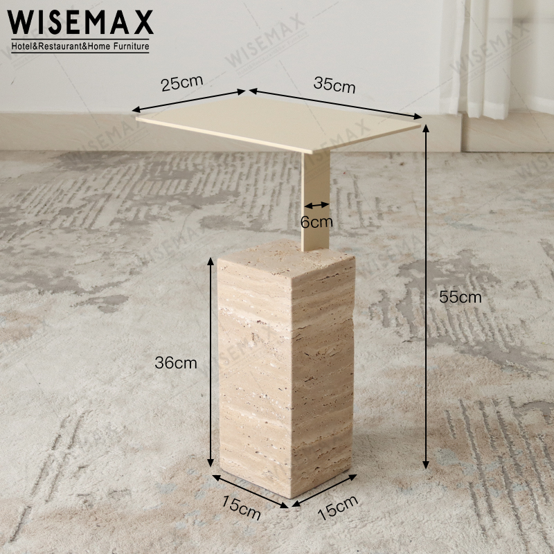 MODERN TRAVERTINE COFFEE TABLE LIVING ROOM MARBLE SIDE TEA CORNER END TABLE WITH METAL TABLE TOP