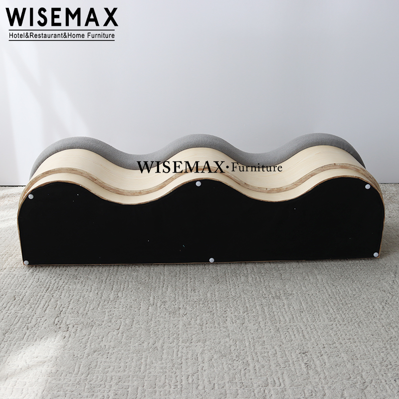 Fabric atop creates a soft, luxurious seating experience,while the sculptural wooden base adds a playful yet sophisticated touch.The bold and artistic fabric upholstered bench brings a unique wave-like design to your space.Perfect for those seeking to make a statement, it blends form and function, offering comfort and style in one eye-catching piece.