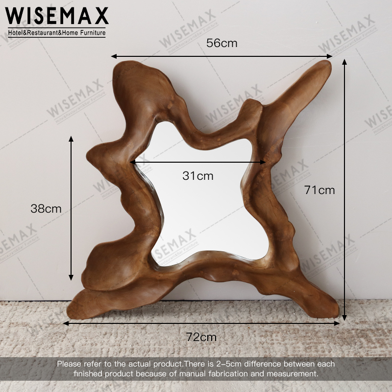 NORDIC RETRO HOME DECORATION TEAK WOOD FRAME WALL MIRROR IRREGULAR SHAPE HANGING MIRROR