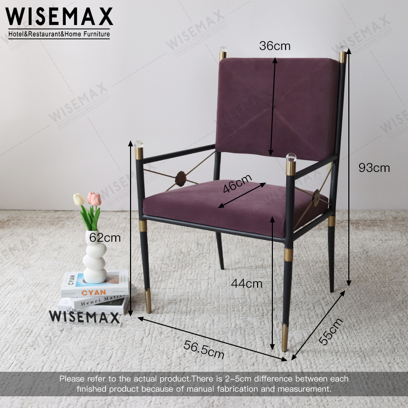 MIDCENTURY STYLE LUXURY ROYAL VELVET TUFTED GOLDEN METAL ARM DINING CHAIR ACCENT CHAIR FOR HOTEL