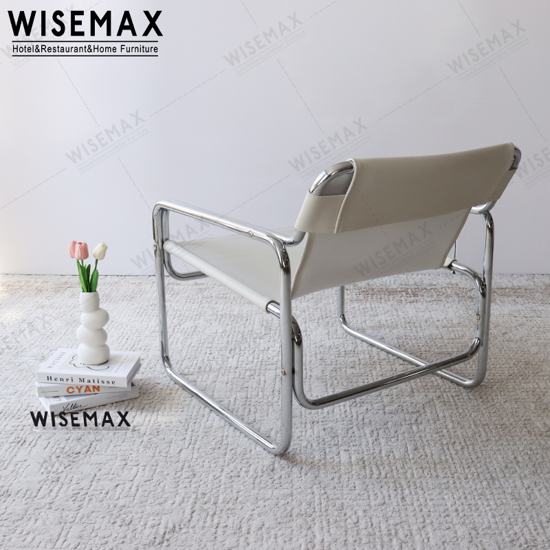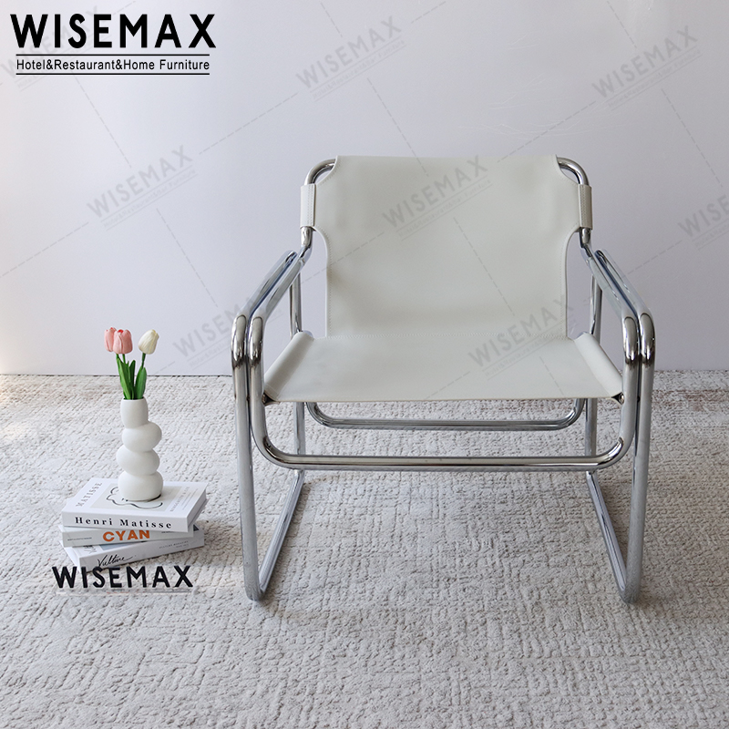 NORDIC LIVING ROOM SADDLE LEATHER CHROME LEISURE ACCENT ARMCHAIR