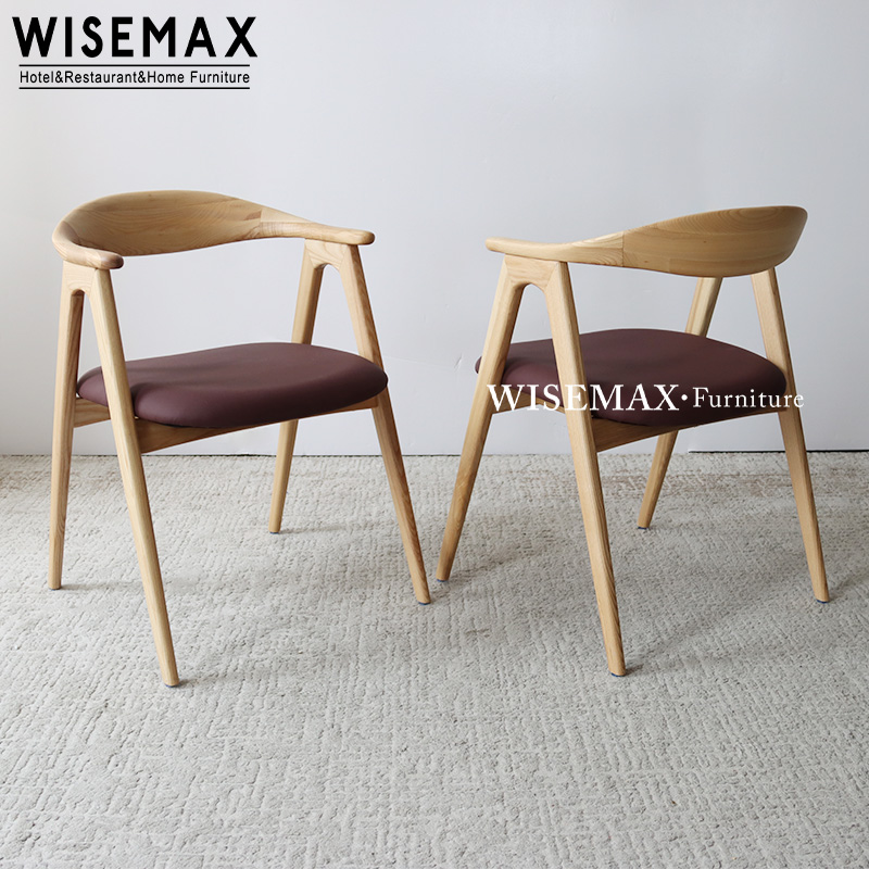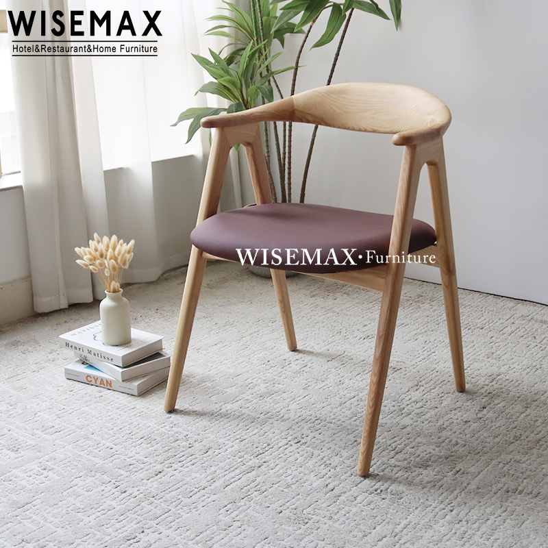 NORDIC DESIGN RESTAURANT FURNITURE SOLID WOOD BACKREST DINING CHAIR SADDLE LEATHER CHAIR FOR HOTEL