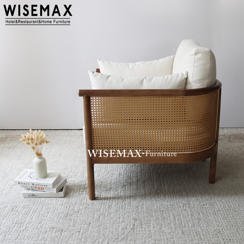 Solid wood +rattan+fabric upholstered+high density sponge