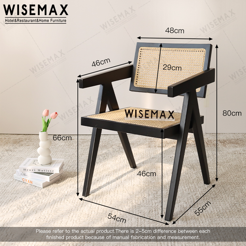 WABI SABI STYLE WOODEN ARM DINING CHAIR BLACK RATTAN WICKER ACCENT CHAIR FOR LIVING ROOM