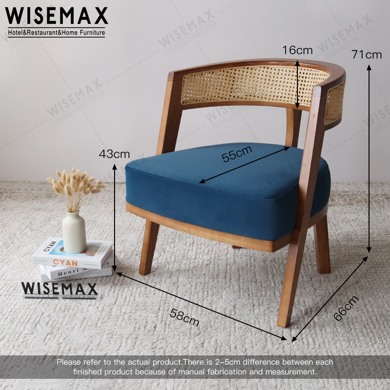 Curved backrest is made of natural woven rattan to be cool and original.The seat is made of high-density sponge and fabric, which is soft and comfortable .Seat area can be leather or fabric,color customization is available.