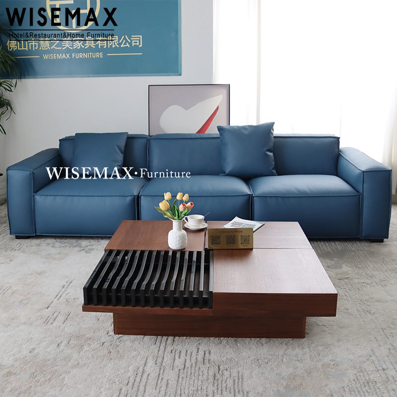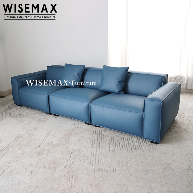 ITALIAN LUXURY LIVING ROOM FURNITURE BLUE TOFU CUBES THREE SEATER SOFA VINTAGE SECTIONAL COUCH SOFA