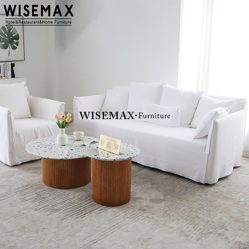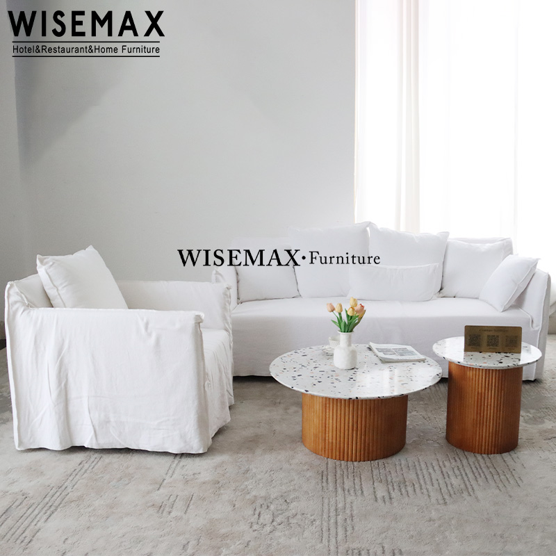 JAPAN WABI-SABI STYLE HOME FURNITURE WHITE FABRIC UPHOLSTERED DOUBLE SOFA RETRO SKIRT COUCH SOFA