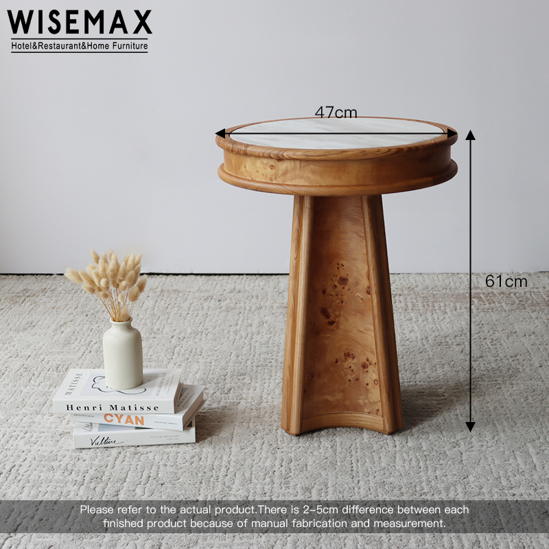 MEDIEVAL LIVING ROOM ROUND WOODEN SOFA SIDE TABLE VINTAGE MARBLE SMALL CORNER TABLE FOR APARTMENT