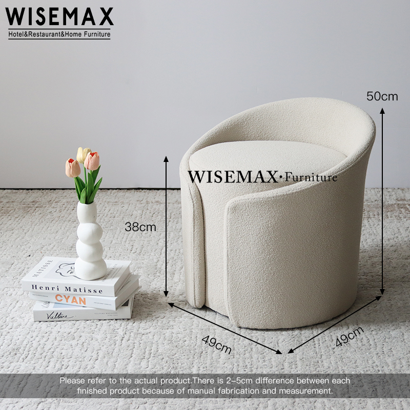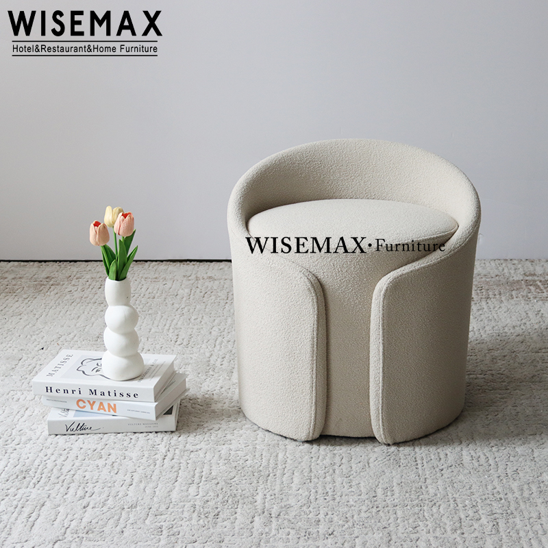 Low backrest design brings support to low back and easy for carry.The stool is cylindrical shape ,which is strong and durable.Same color is of white fabric, it can customized to velvet fabric or other color.