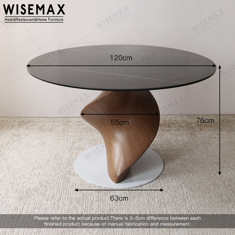 LIGHT LUXURY ROUND BLACK SINTERED STONE DINING TABLE FOR HOTEL DINING FURNITURE