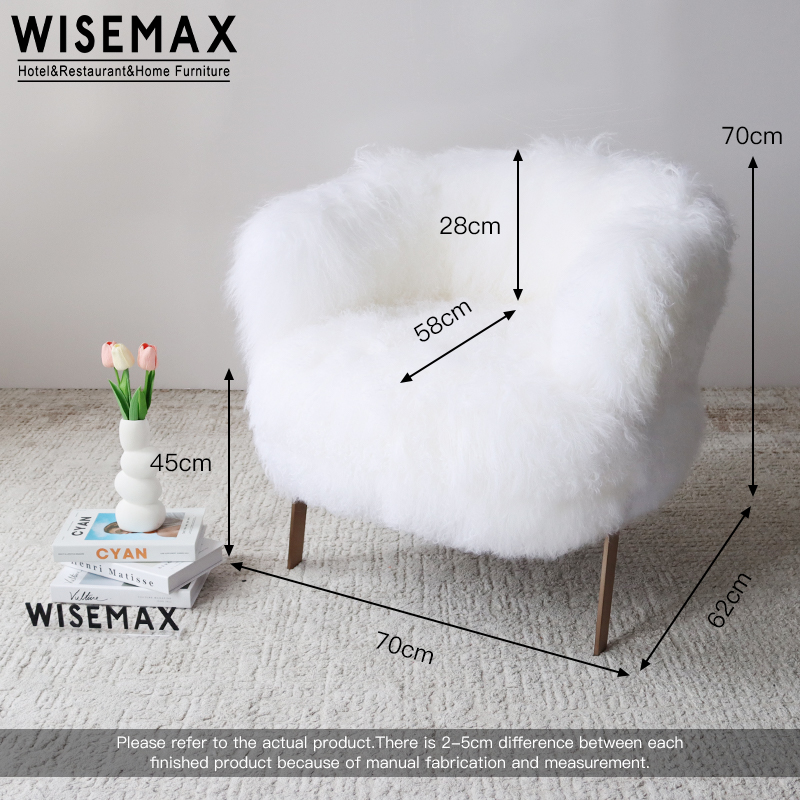MODERN CREATIVE LOUNGE CHAIR LIVING ROOM FURNITURE HOME METAL WOOL UPHOLSTERY WHITE FLOOR CHAIR