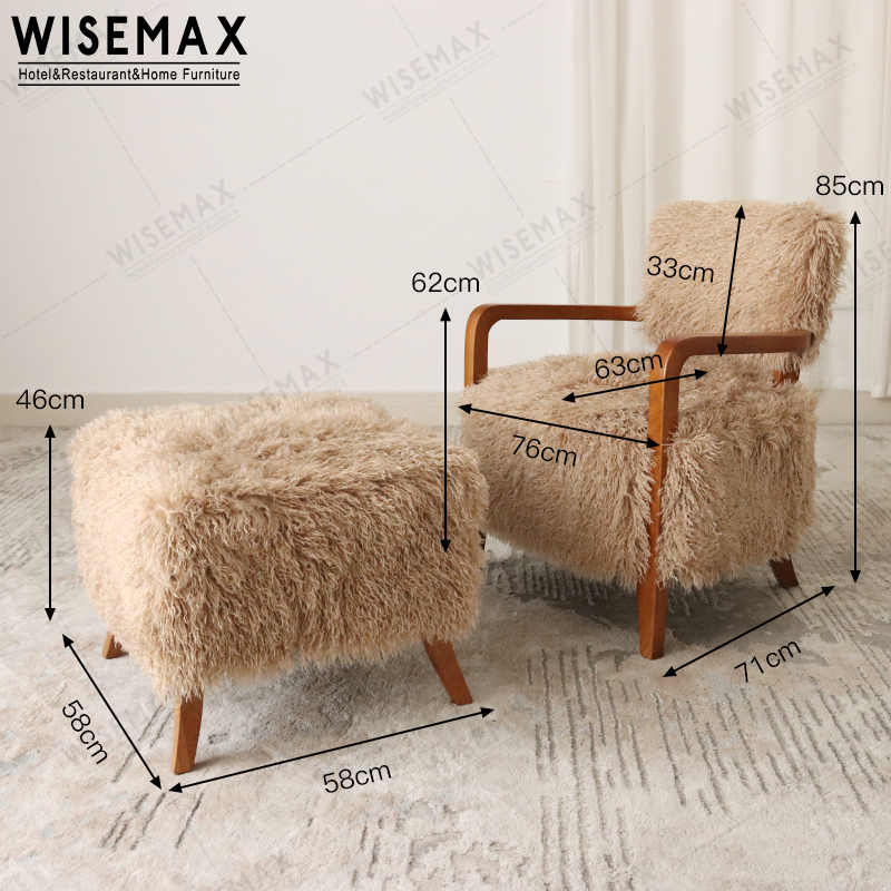 LUXURIOUSLY COMFORTABLE SINLGE ARM CHAIR SHAGGY FUR LOUNGE CHAIR WITH OTTOMAN SET