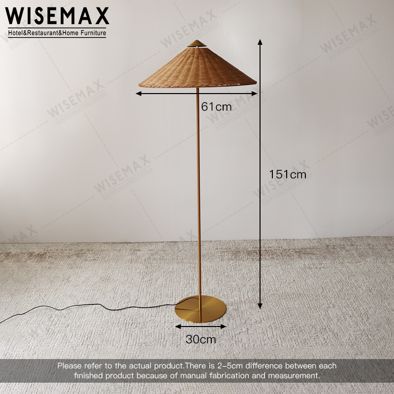 The lampshade of the floor lamp is made of rattan, which is ventilated and elegant.The floor lamp combines elegant golden metal with rattan weaving, exquisite and classical