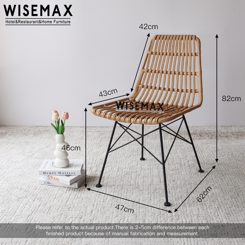 MINIMALIST RATTAN OUTDOOR DINING CHAIR METAL LEGS BEIGE COLOR WICKER DINING CHAIR FOR PATIO