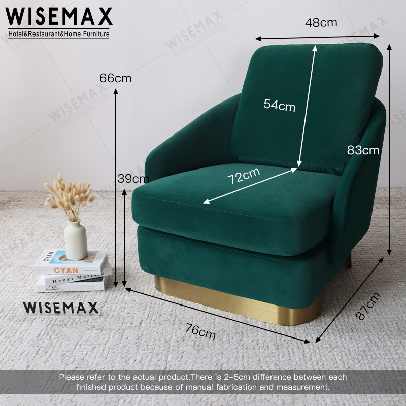 The tilted backrest better fits the curve of the human back.The backrest cushion is made of sponge and fabric, soft and comfortable.The stainless steel base makes the leisure chair stable, durable and beautiful.