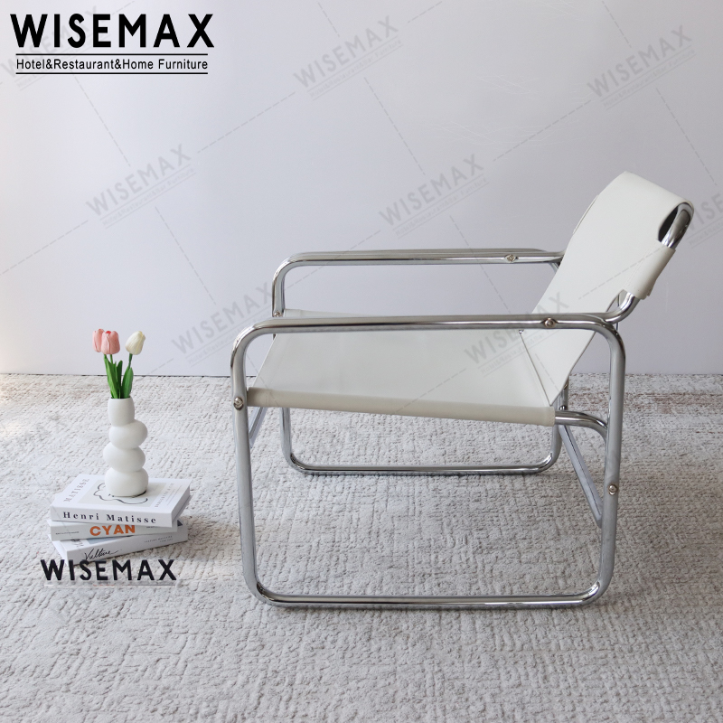 NORDIC LIVING ROOM SADDLE LEATHER CHROME LEISURE ACCENT ARMCHAIR