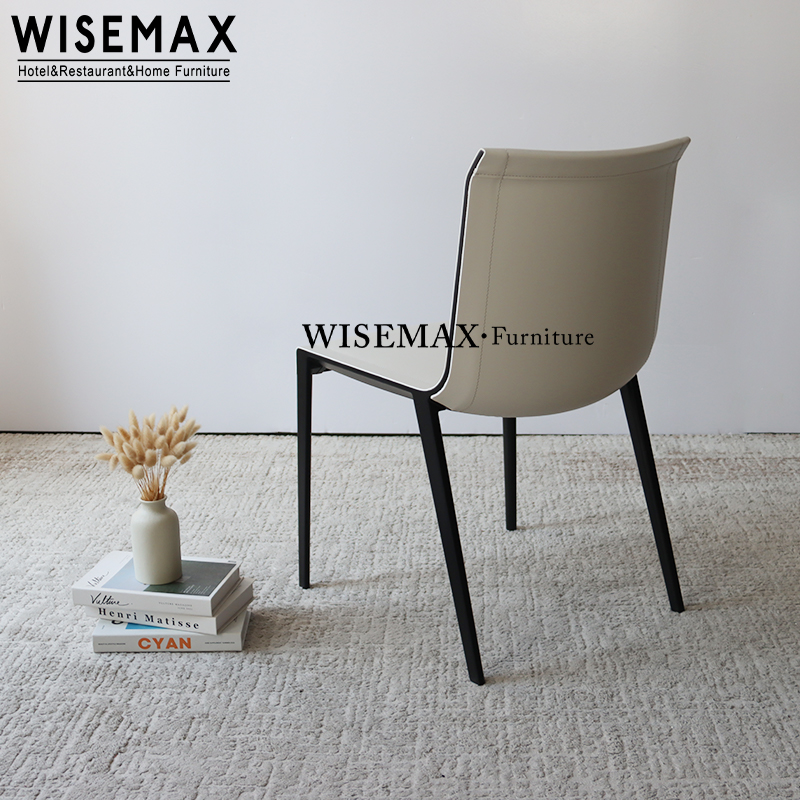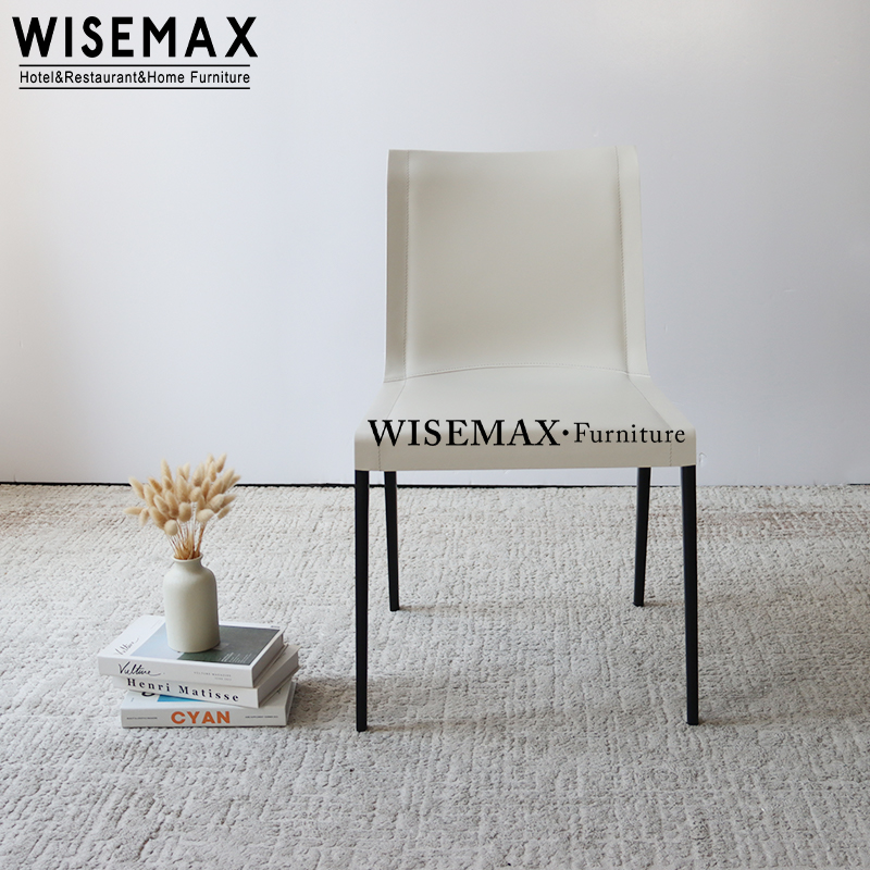 The white saddle leather backrest features smooth lines and a simple yet stylish design.The full, thick white seat cushion provides comfortable and stable support.The slender black metal chair legs provide stable support for the entire chair, and the design is clean and neat.