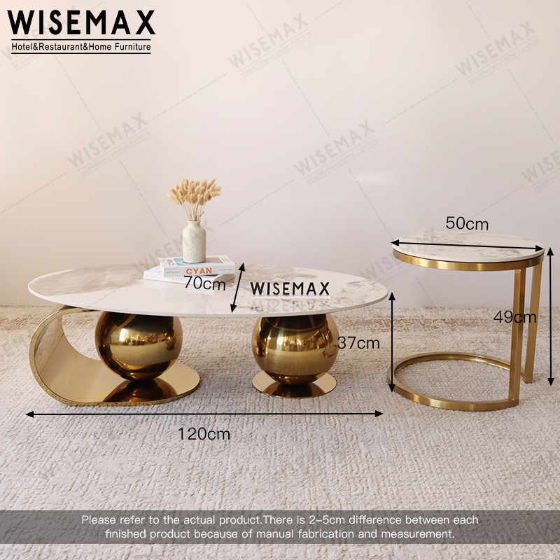 MINIMALIST LUXURY SINTERED STONE STAINLESS STEEL GOLDEN OVAL COFFEE TABLE SET