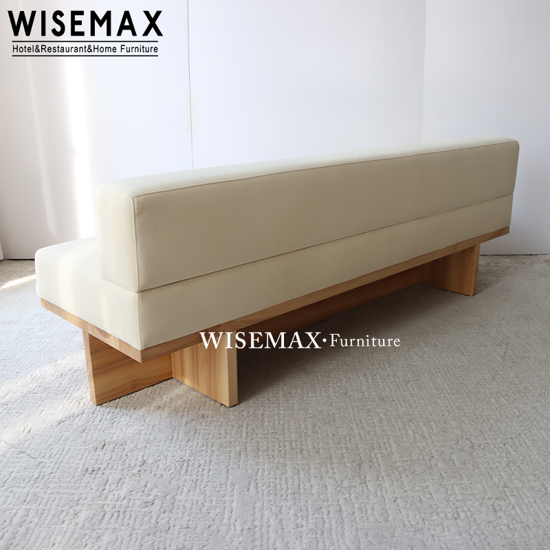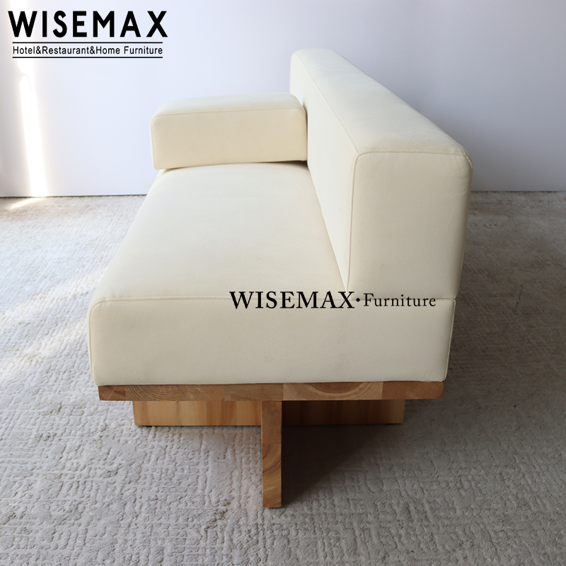 The simple curved backrest is gently supported by light beige upholstery, allowing you to relax completely while leaning back.The large, well-padded seat cushion, paired with square throw pillows in the same color scheme, provides a soft and comfortable seating experience and creates a warm and inviting atmosphere.The light-colored solid wood square legs, with their robust and sturdy design, inject a solid texture into the overall light visual effect.