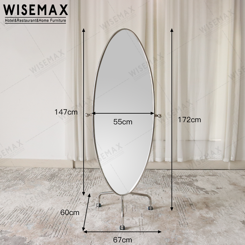 MODERN BEDROOM DRESSING MIRROR STIANLESS STEEL FRAME OVAL SHAPE FLOOR MIRROR WITH WHEELING