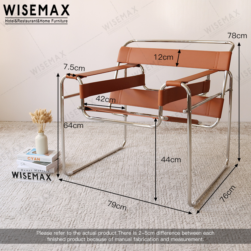 CLASSIC MID CENTURY BAUHAUS STAINLESS STEEL CHROME SADDLE LEATHER ARM LEISURE CHAIR