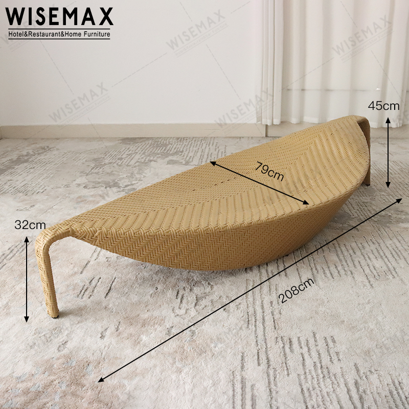 The outdoor sun bed is made of hand woven outdoor PE rattan, with a shape similar to leaves and an inner frame made of aluminum, making it more suitable for outdoor use. The PE vine has been carefully treated and is neat and smooth.