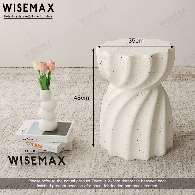 The side table is made of newest matrial magnesium oxide,durable and sturdy.The edge is round and smooth after careful treatment.The column of the coffee table is wavy, simple and creative.
