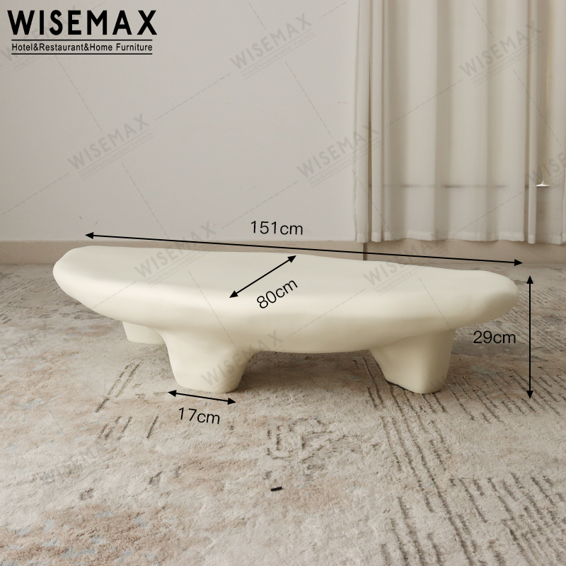 The entire coffee table is made of fiberglass and has an irregular shape. The overall size is 151*80*29cm and is packed in standard cartons. The bedside sample is white or black.