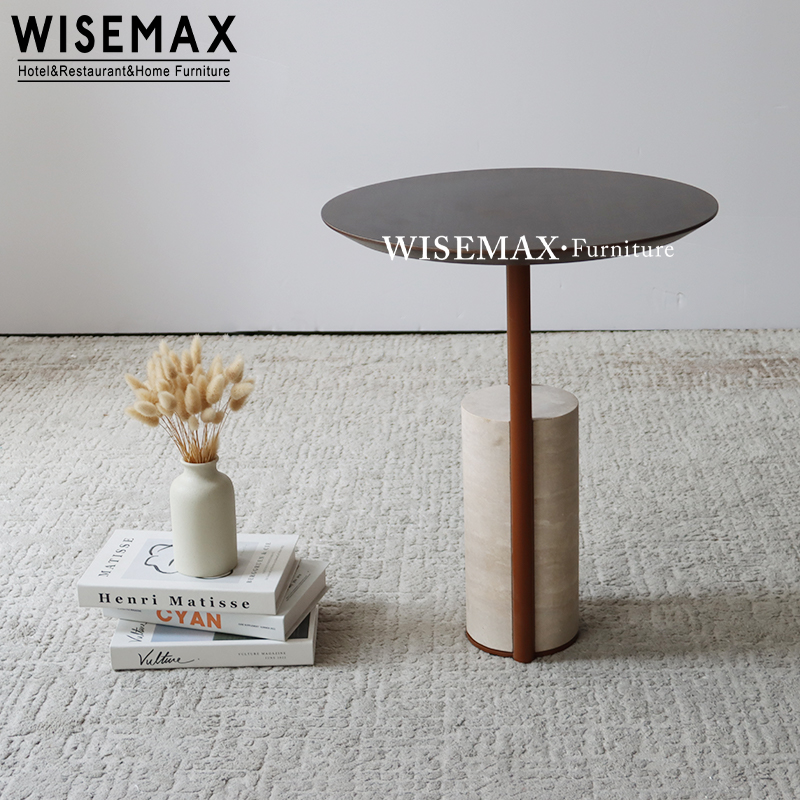 NORDIC MINIMALIST HOME FURNITURE TRAVERTINE SOFA CORNER TABLE ROUND MOVABLE COFFEE TABLE FOR HOTEL