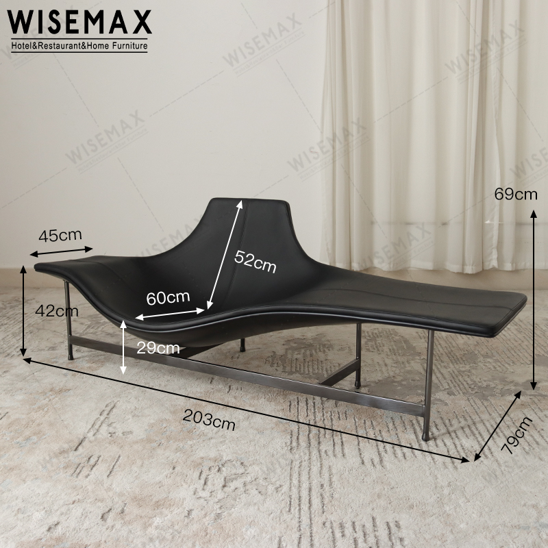 ITALIAN STYLE LUXURY STAINLESS STEEL FRAME LEATHER CHAISE LOUNGE SOFA FOR LIVING ROOM BEDROOM