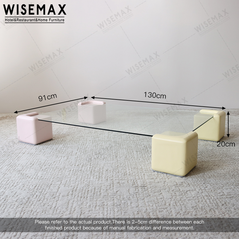 LOVELY COLOR RECTANGULAR LOW HEIGHT FLOOR GLASS COFFEE TABLE WITH FIBERGLASS BASE