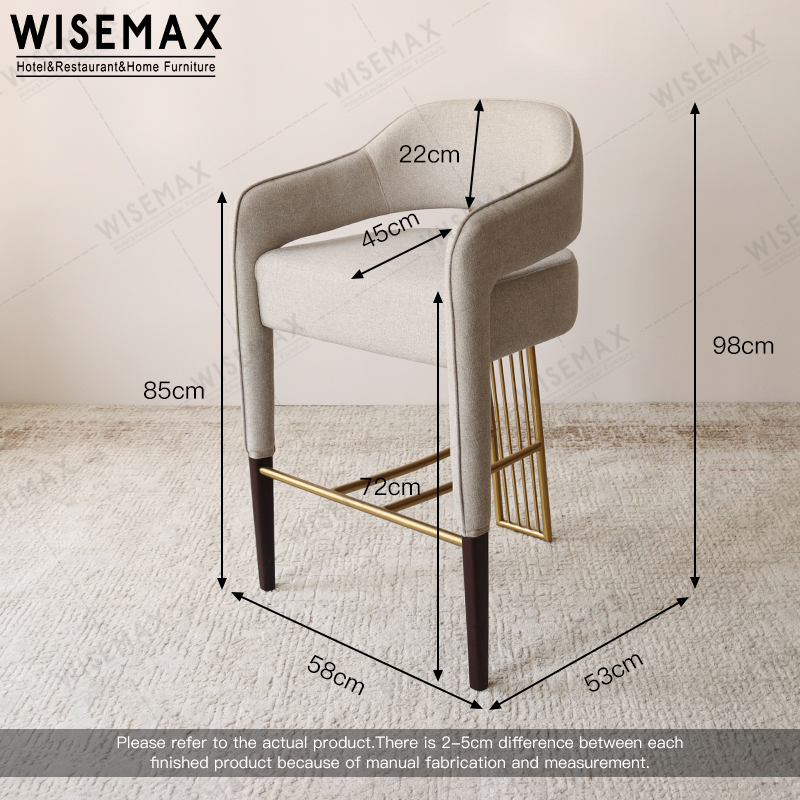 LUXURY FABRIC UPHOLSTERED COUNTER HEIGHT BAR CHAIR WITH BACKREST AND ARMREST FOR ISLAND