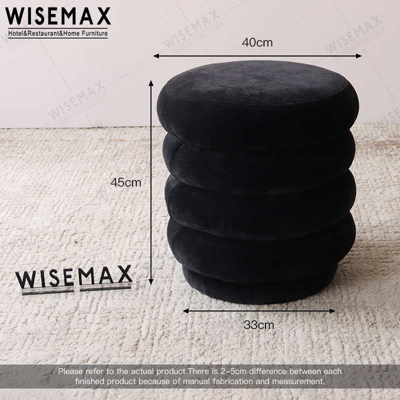 Modern living room sofa side velvet round ottoman stool.