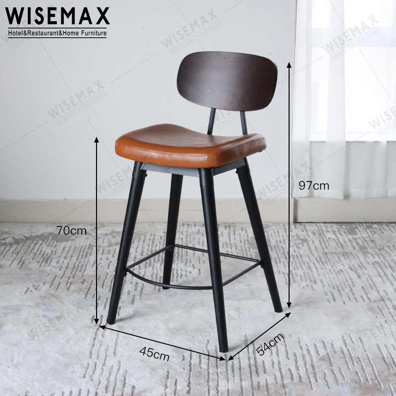 RETRO VINTAGE BAR CHAIR METAL FRAME PU LEATHER COUNTER HIGH BAR CHAIR FOR RESTAURANT BAR STOOL
