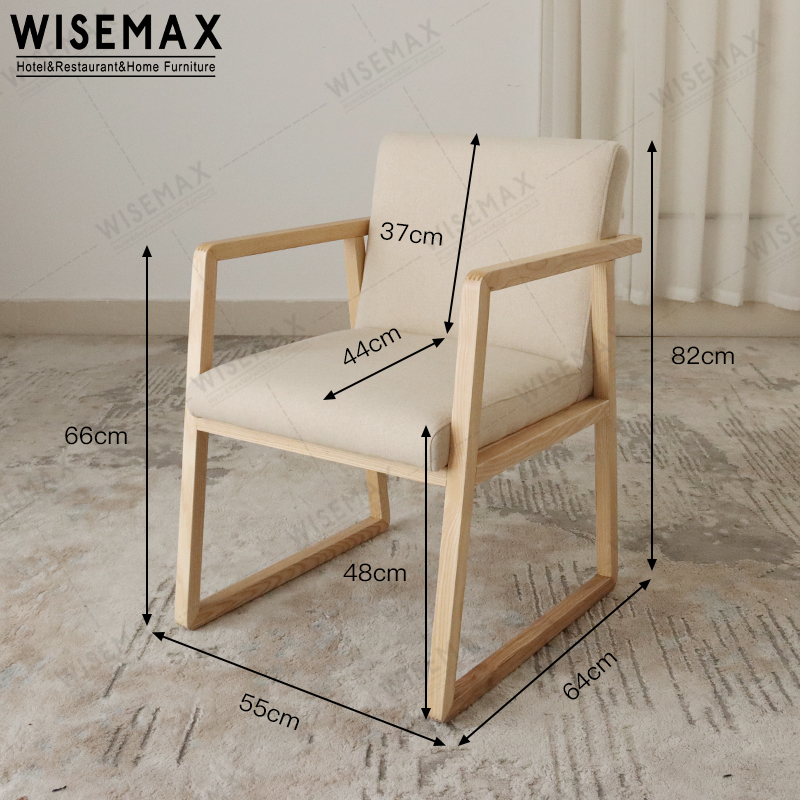 SCANDINAVIAN ASH WOOD NATURAL ARMREST METTING WATING CHAIR FABRIC SEAT DINING CHAIR FOR CAFE DINING