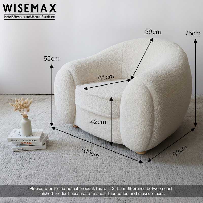 FRENCH CREAM STYLE LIVING ROOM SINGLE SOFA SIMPLE FABRIC UPHOLSTERED LAZY COUCH CHAIR FOR APARTMENT